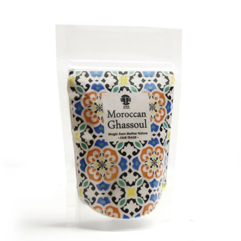 Ghassoul是阿拉伯文,意指「清潔」,當地傳統上用於美容及護膚。Ghassoul礦物粉採自摩洛哥亞特拉斯山脈上的天然沉積岩土,能深層清潔皮膚,當中的礦物質能吸去多餘皮脂及污垢 ,可收斂毛孔,感覺清爽潔淨,同時保持肌膚水份,不會影響肌膚的天然保護層。不含防腐劑。可用作洗臉、洗髮、洗澡或面膜。